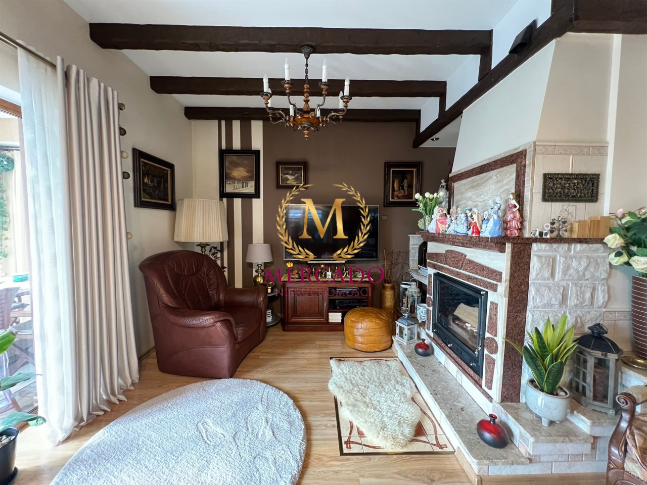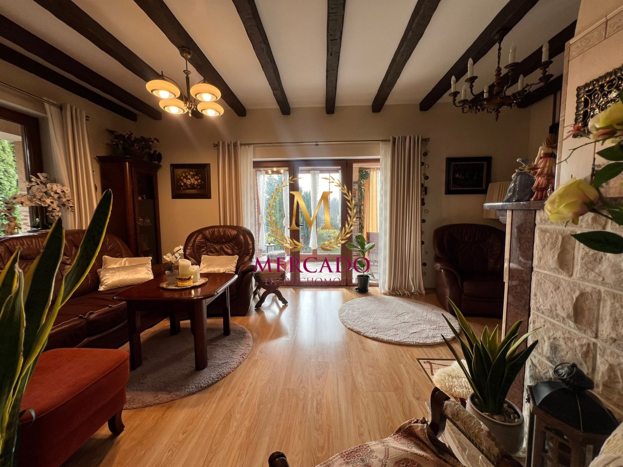 - Salon z kominkem i wyjściem na piękny taras.