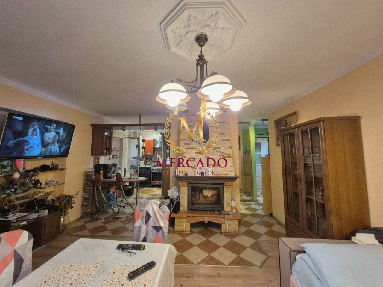 - duży salon z kominkiem otwartą kuchnią i wyjściem na taras,