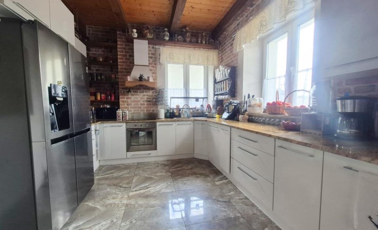 Charakter tego domu oddaje drewniana podłoga na parterze, którą właściciele zachowali do dziś. Wyeksponowane zostały drewniane belki i słupy na poddaszu, a także uwypuklono ceglane ściany po wschodniej i zachodniej stronie domu. Nieruchomość zdecydowanie polecana dla osób poszukujących klimatycznego miejsca, unikalnego charakteru i duszy. Miejsce doskonale sprawdzi się też dla osób poszukujących kontaktu z naturą. W bliskiej odległości obszar objęty ochroną Natura 2000, a także sieć ścieżek rowerowych i pieszych.