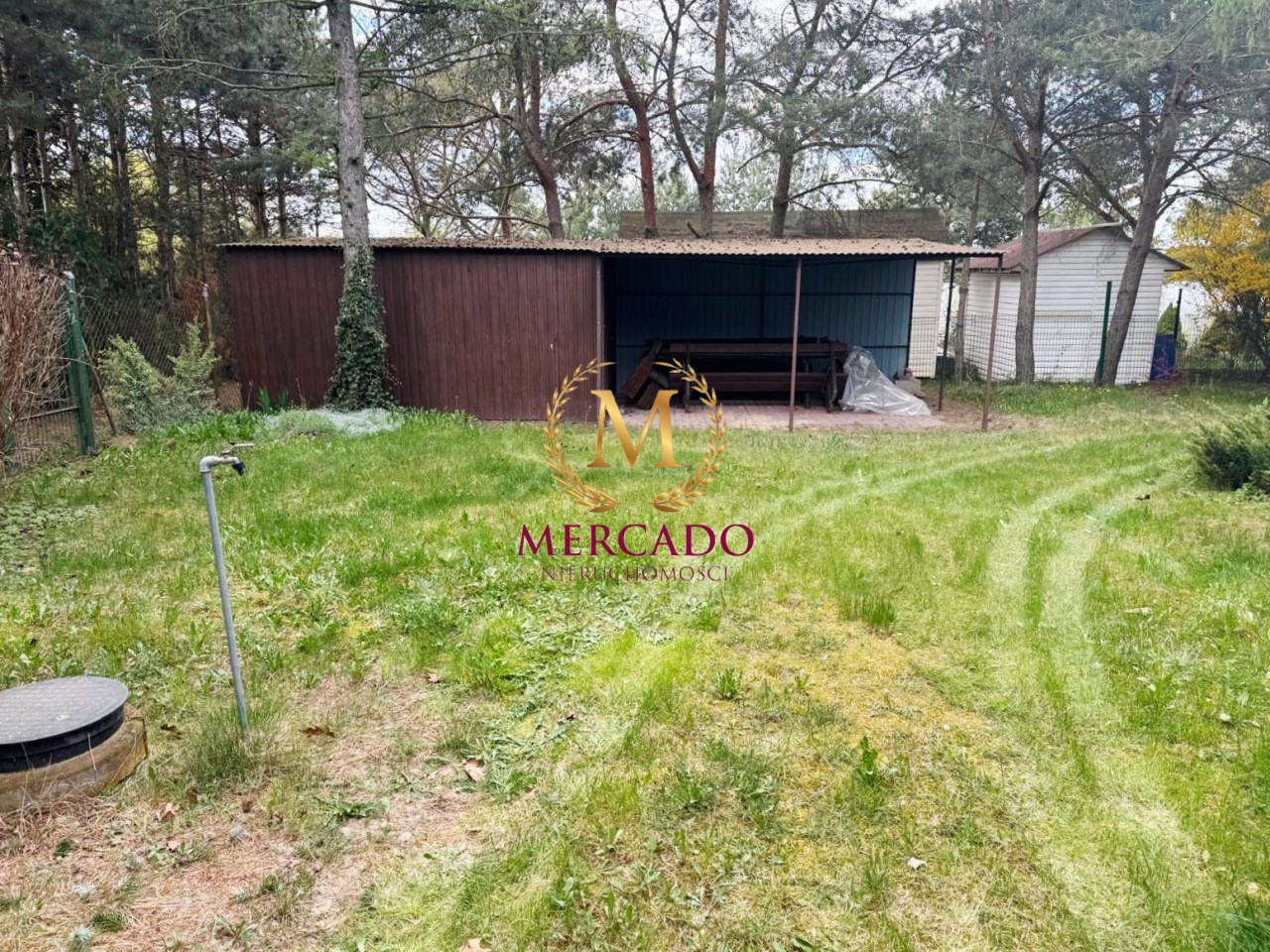 Działka jest ogrodzona i zagospodarowana – nasadzenia krzewów zapewniają prywatność i tworzą przytulny klimat. Na terenie znajduje się także wiata oraz budynek gospodarczy przeznaczony na narzędzia.