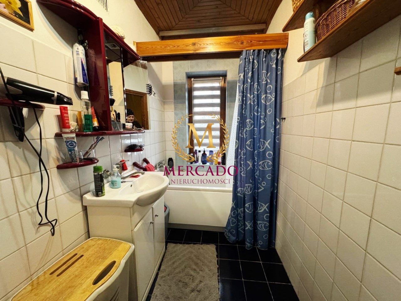 - na podłodze w pokojach deski podłogowe, w łazienkach, kuchni i korytarzu płytki,