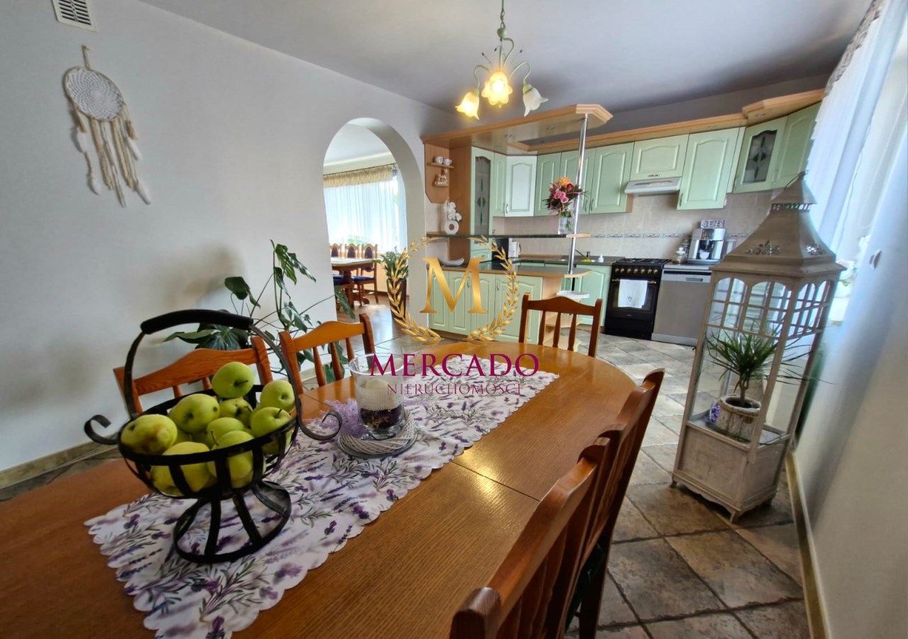 Jest to starannie wykończony dom, metraż nieruchomości sprawia, że czujemy się tam bardzo przestronnie i komfortowo, rozkład pomieszczeń pozwala na przystosowanie tej nieruchomości do użytku dla dwóch rodzin. Mamy do dyspozycji bardzo dużo zaplecza, dzięki podpiwniczeniu pod całym domem (wysoka piwnica). Działka jest zagospodarowana, znajduje się na niej również dwustanowiskowy garaż, wolnostojąca altanka. Podjazdy wyłożone kostką brukową, brama otwierana z pilota.