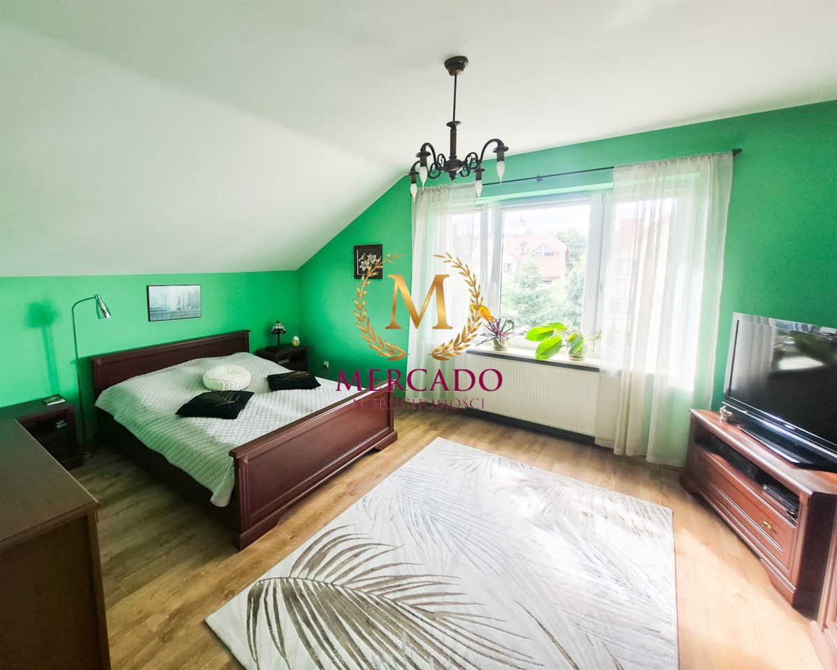 Ta niezwykle zadbana nieruchomość jest doskonale skomunikowana z miastem, a zarazem stwarza doskonałe miejsce do spokojnego życia i odpoczynku. Najbliższe otoczenie to niska zabudowa jednorodzinna. Dom znajduje się w bocznej uliczce na osiedlu z niskim natężeniem ruchu.