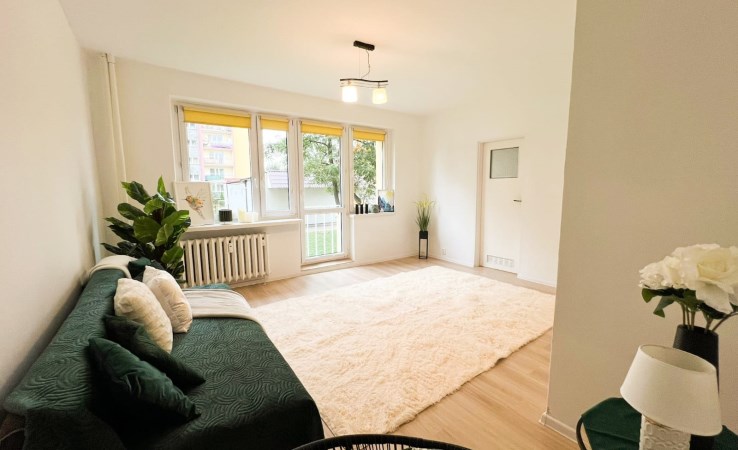 Mieszkanie gotowe do wprowadzenia, dobrze oświetlone. Osiedle dobrze skomunikowane z resztą miasta. Wokół bloku występuje dużo zieleni.