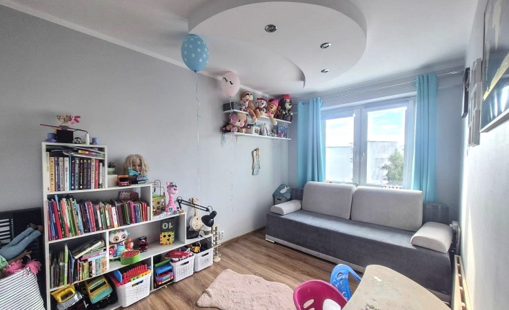 Mieszkanie o powierzchni blisko 60 m², położone jest na parterze budynku z 2018 roku. W pobliżu znajdują się sklepy, punkty usługowe i edukacyjne, a komunikacja miejska pozwala na sprawne dotarcie do innych części miasta. Osiedle jest zadbane, zamknięte i monitorowane, co zapewnia poczucie bezpieczeństwa mieszkańcom.