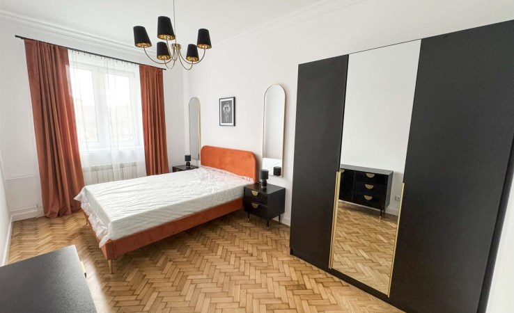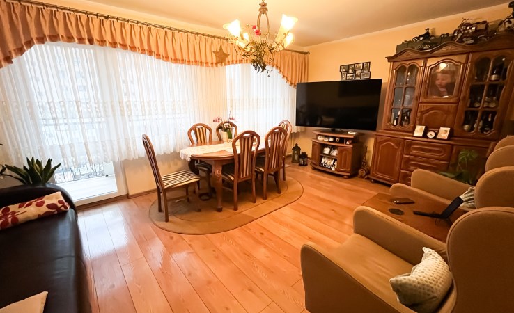 Mieszkanie przeszło częściowy remont (wymiana okien), duża kuchnia z jadalnią/ małym salonem, na podłogach panele oraz płytki. Na ścianach gładź oraz tapety. W pokojach szafy w zabudowie. Łazienka z dużą wanną.