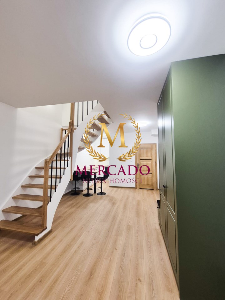 Biuro nieruchomości MERCADO prezentuje wyjątkową ofertę, nowoczesny, dwupoziomowy, umeblowany apartament o powierzchni całkowitej 90m2 usytuowany na 1 piętrze w niskim bloku z windą, na terenie zamkniętym. Mieszkanie pachnące nowością, czeka na swojego pierwszego najemcę.